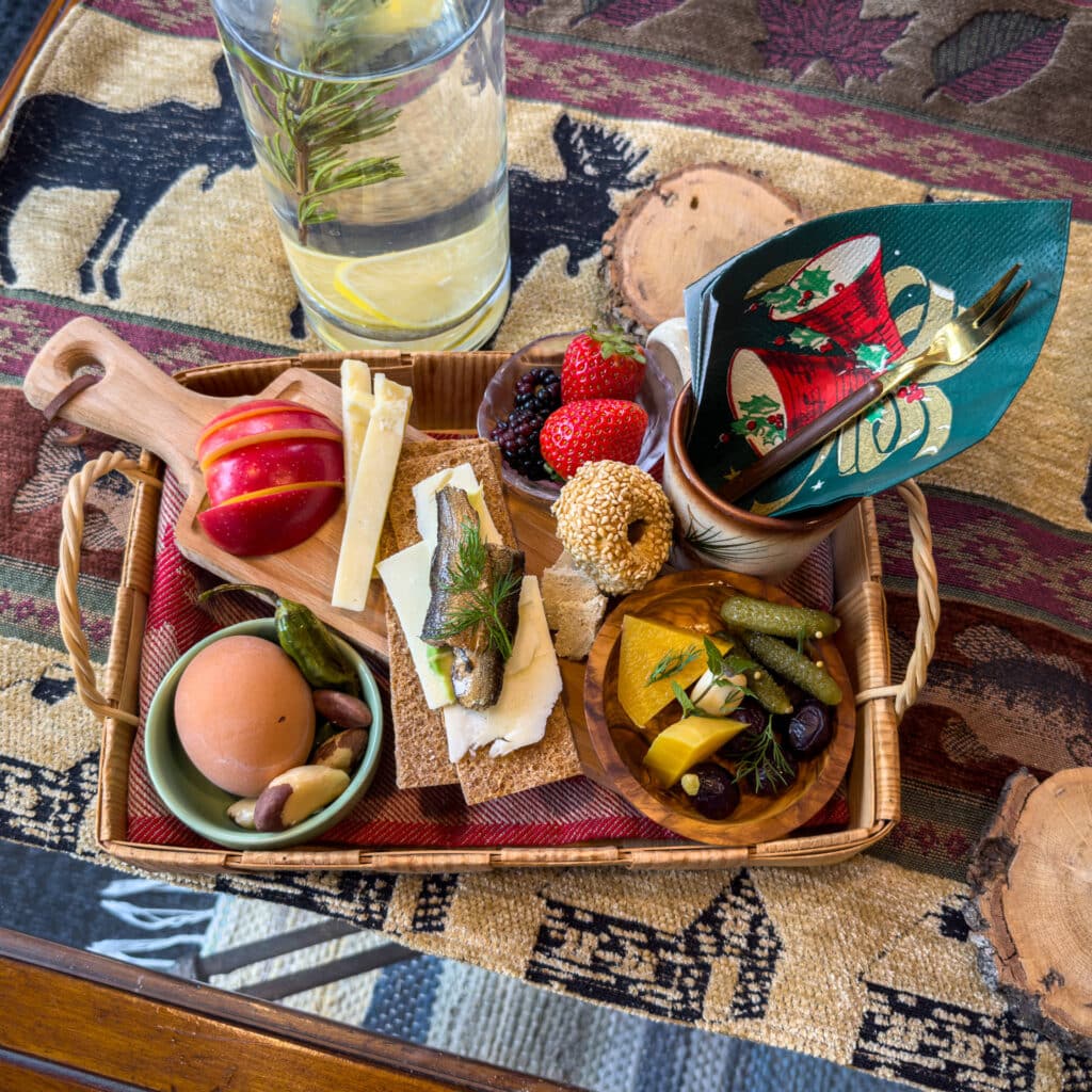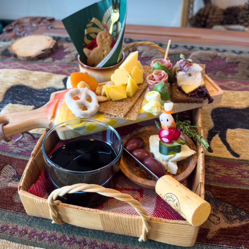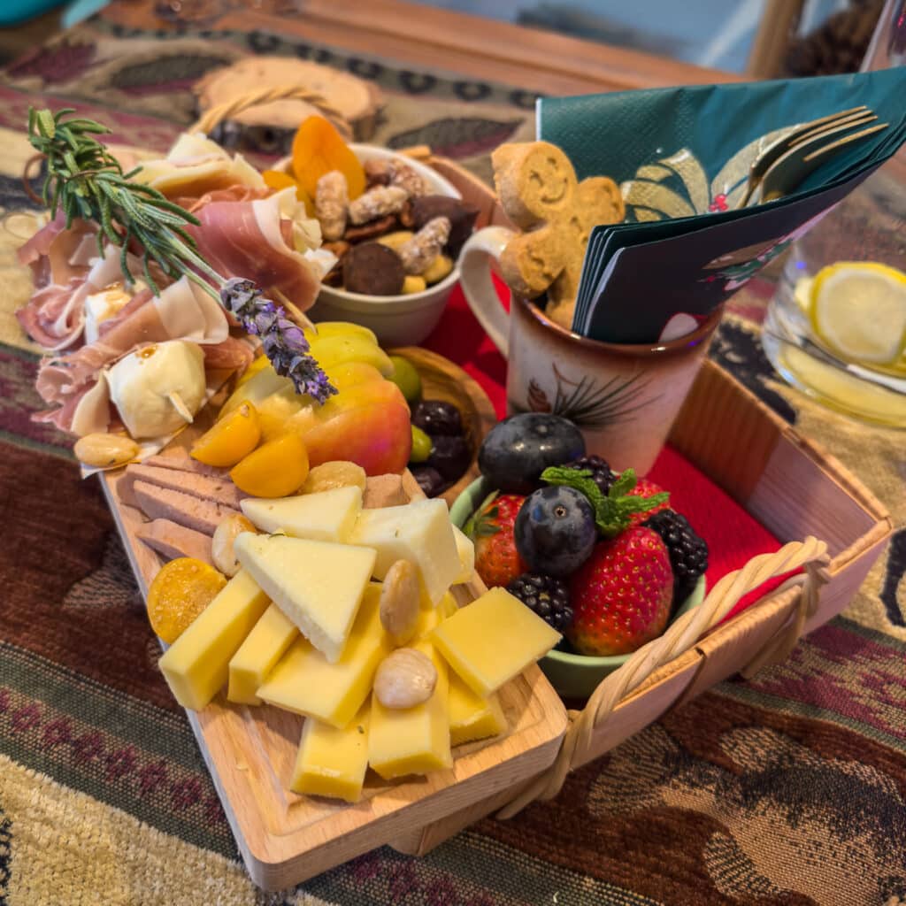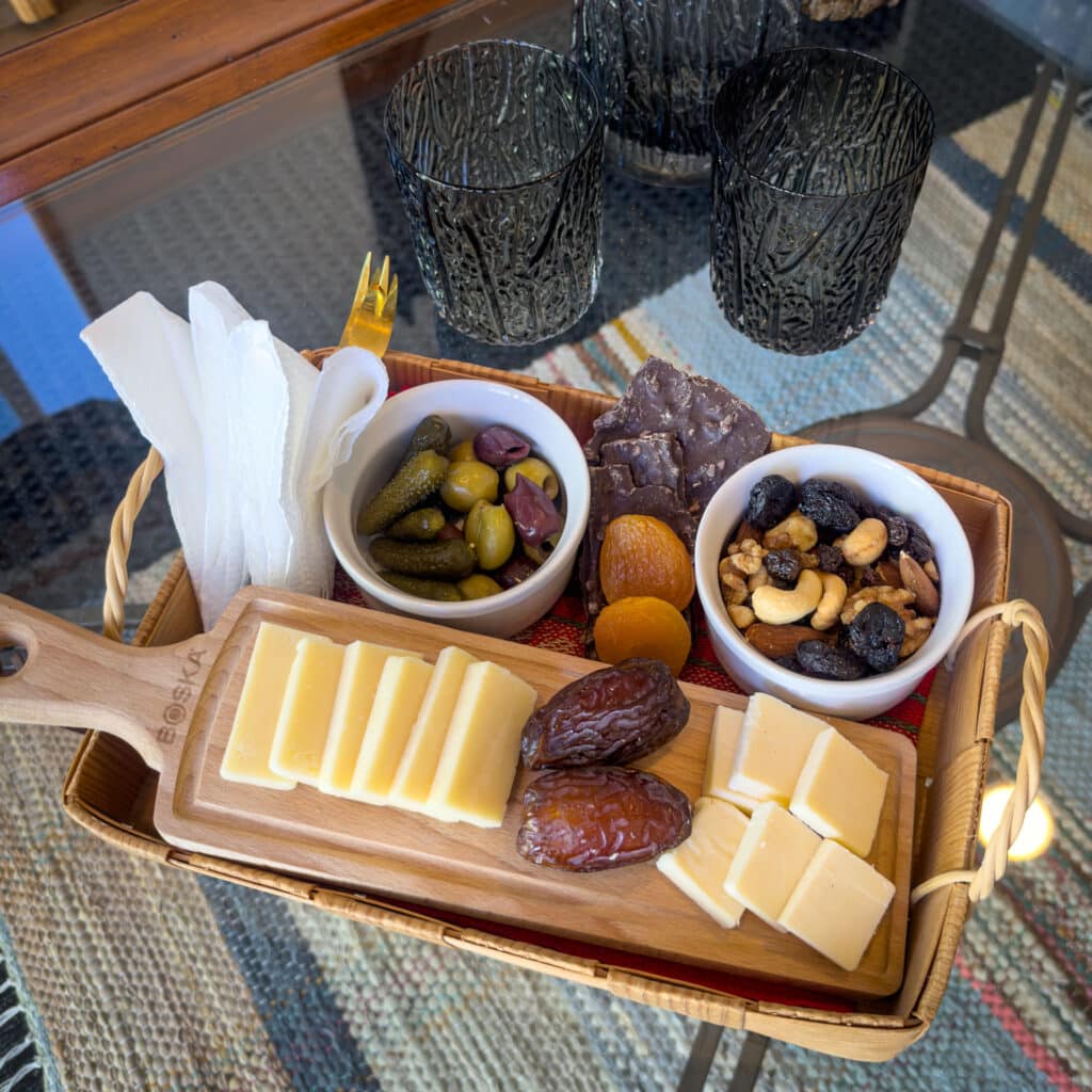 Guests have the option to add on a freshly prepared charcuterie board of snacks to enjoy and replenish the body during your sauna session. Items can include specialty cheese, nuts, olives, pickles, fruits, chocolate, bread, special treats, and more. Items will vary based on availability.