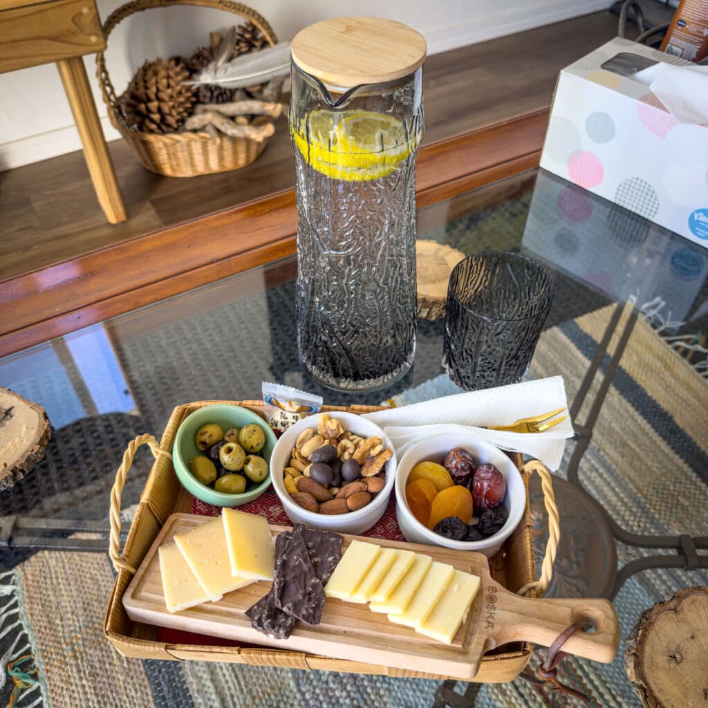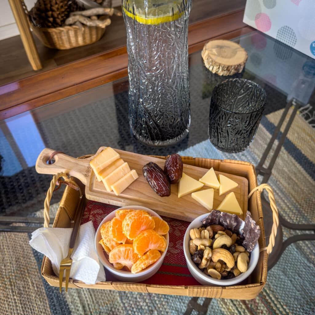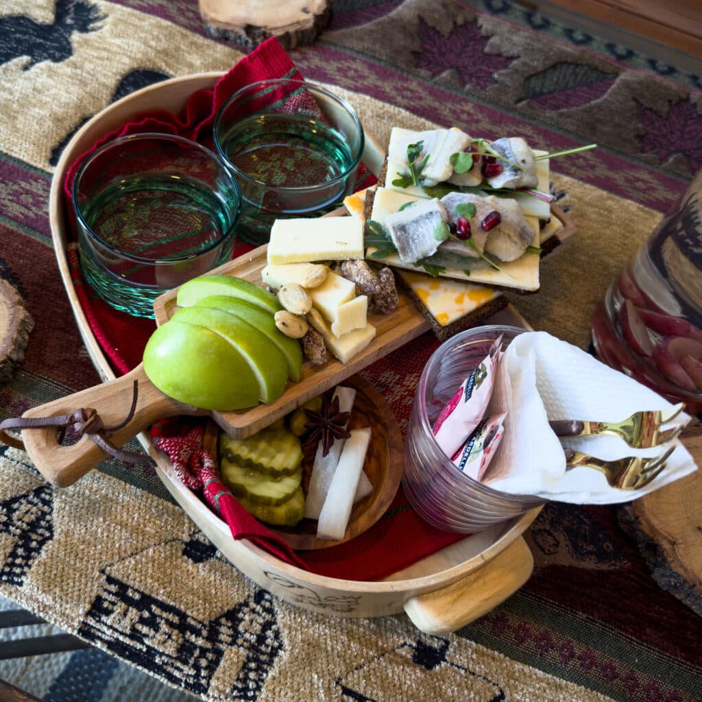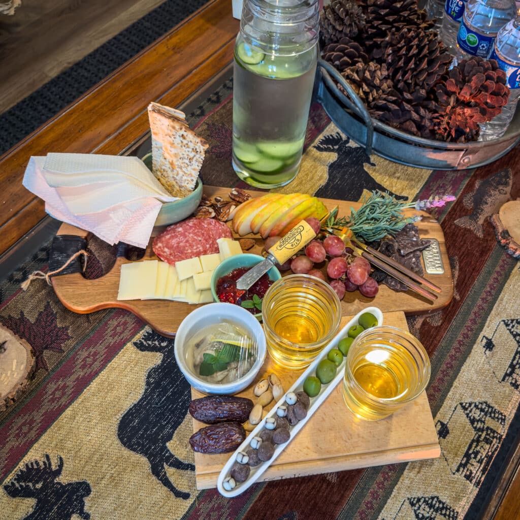 Guests have the option to add on a freshly prepared charcuterie board of snacks to enjoy and replenish the body during your sauna session. Items can include specialty cheese, nuts, olives, pickles, fruits, chocolate, bread, special treats, and more. Items will vary based on availability.